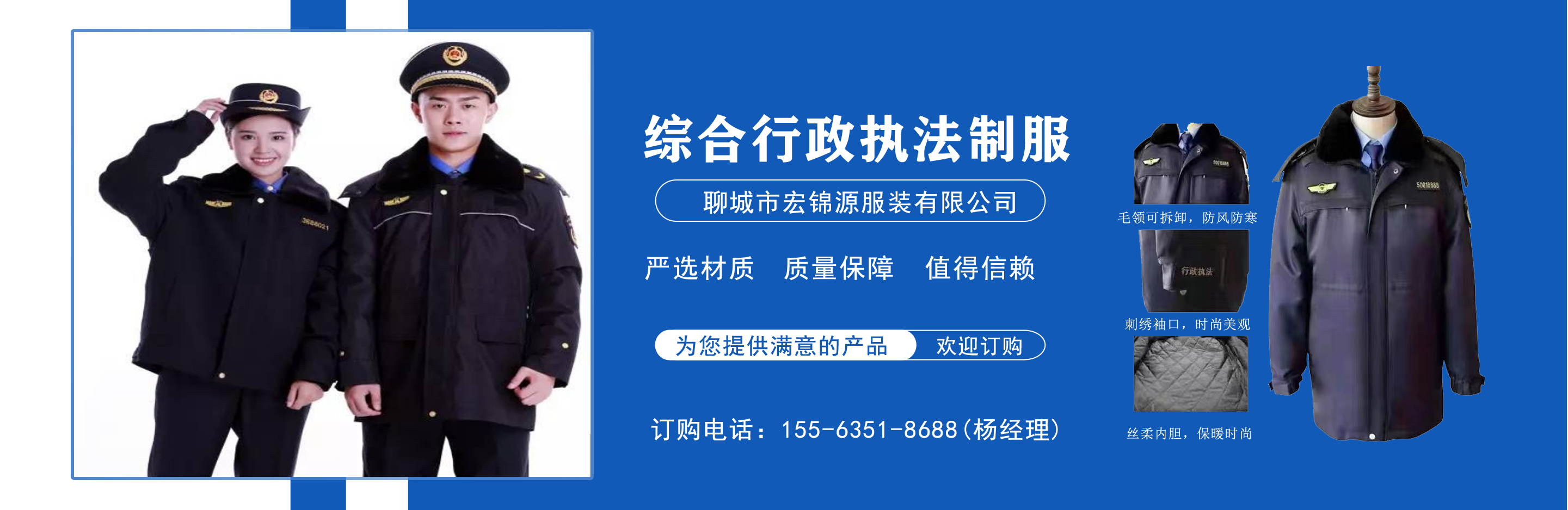 聊城市宏錦源服裝有限公司位于江北水城—山東聊城,地理位置優(yōu)越,交通便利。公司主營綜合行政執(zhí)法制服,交通執(zhí)法服裝,應急管理執(zhí)法標志服,市場監(jiān)督管理標志服,農(nóng)業(yè)執(zhí)法服裝,生態(tài)環(huán)境保護制服,文化市場執(zhí)法服,城管標志服裝廠,衛(wèi)生監(jiān)督制服,六部門標志服廠家等,值得信賴! 公司生產(chǎn)的標志服裝據(jù)有造型美、板型新、多次水洗不退色、不變型、不起泡。 “認真辦事,踏實做人”是宏錦源的企業(yè)精神,我們的宗旨是:“用服務與真誠來換取你的信任與支持,互惠互利,共創(chuàng)雙贏!”我公司愿與國內(nèi)外各界同仁志士竭誠合作,共創(chuàng)未來企業(yè)目標:在已選定的服飾領(lǐng)域中,成為行業(yè)的卓越者。 經(jīng)營理念:追求產(chǎn)品卓越,為用戶提供完美、高效的服務。...